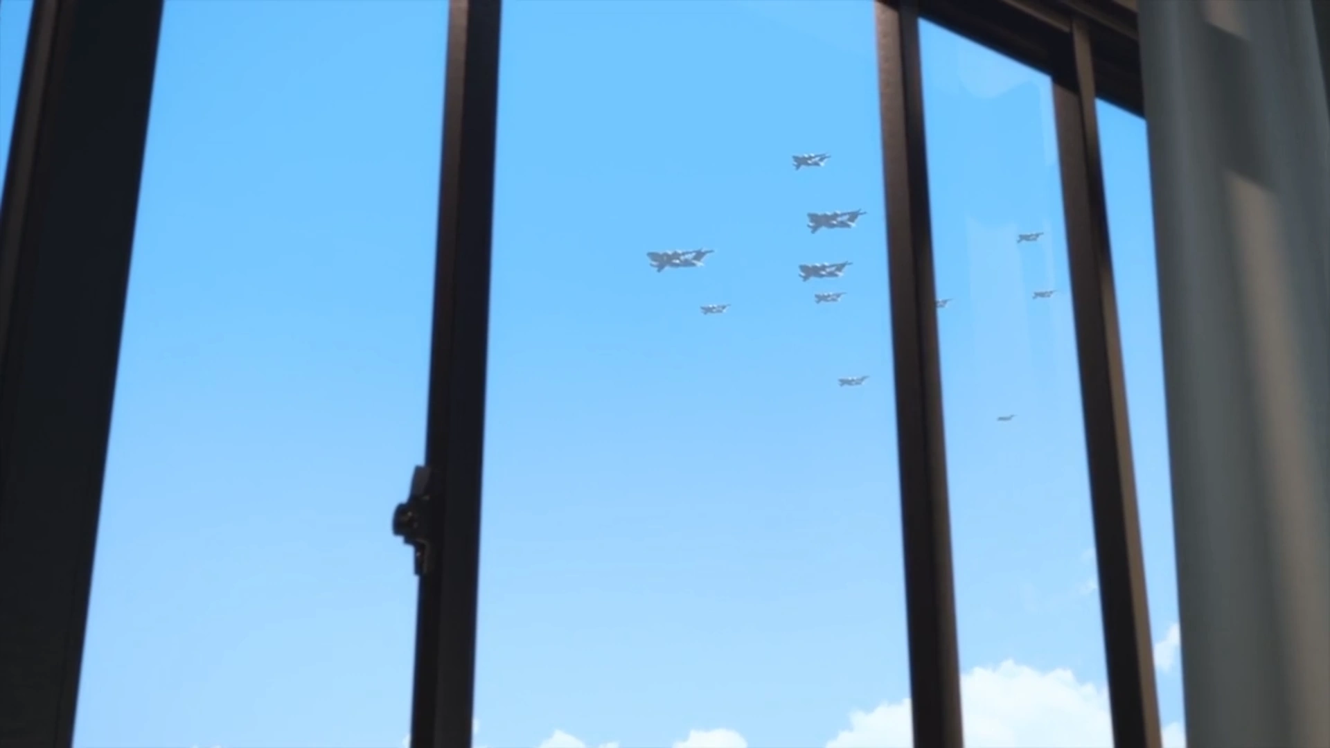 Foreign invaders are seen from Takashi Shimamura's high school during the Sustainable War.
